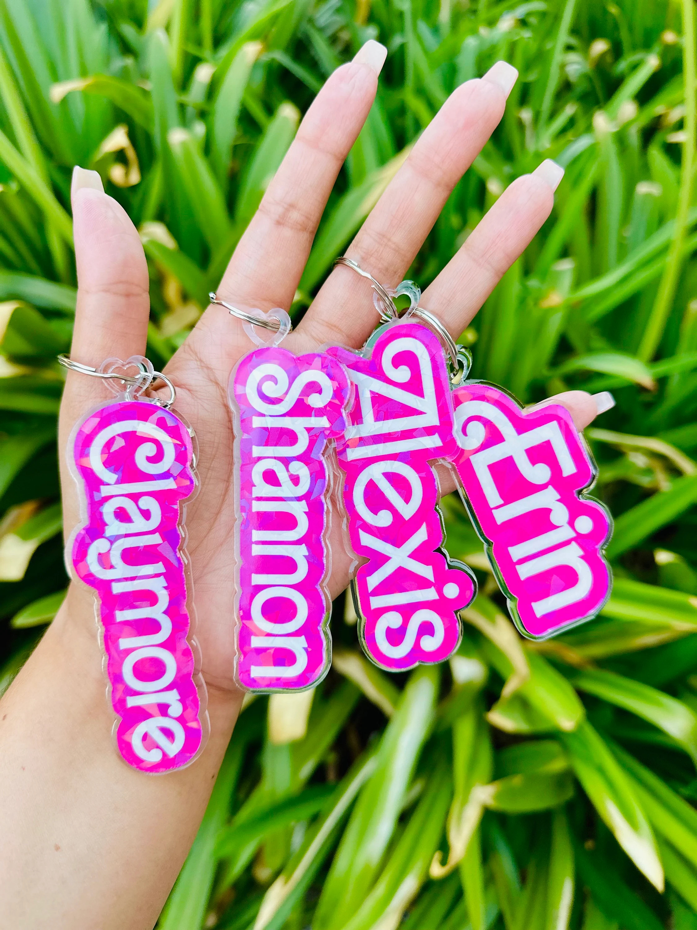 Custom Pink Name Acrylic Keychain, Let's go Party, Custom Name Keychain