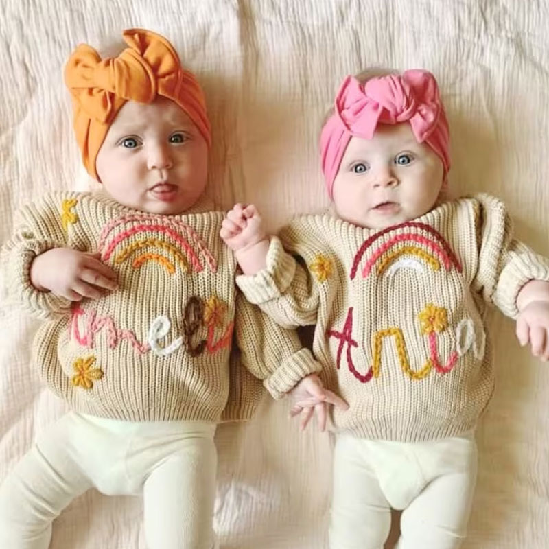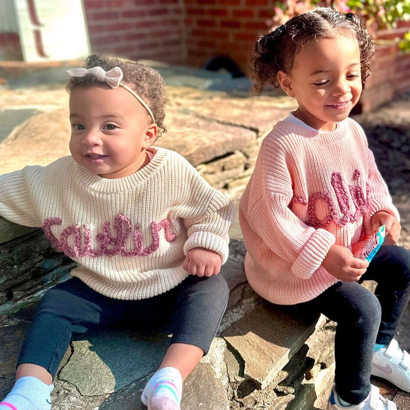 Hand Embroidered Oversized Personalized Baby Name Sweaters