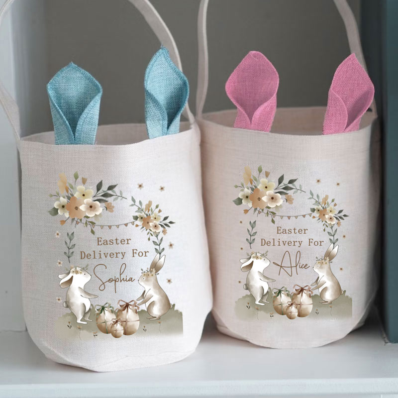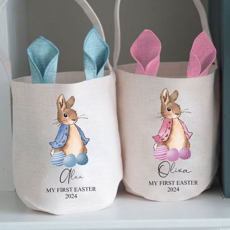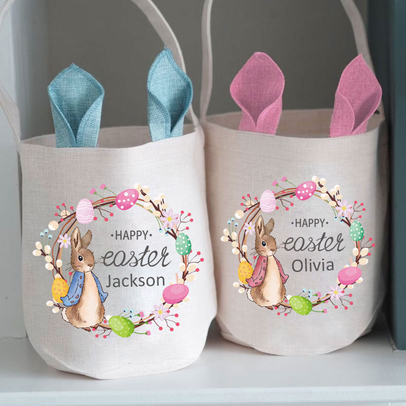 Custom Easter Bunny Basket with Name Initial Bag
