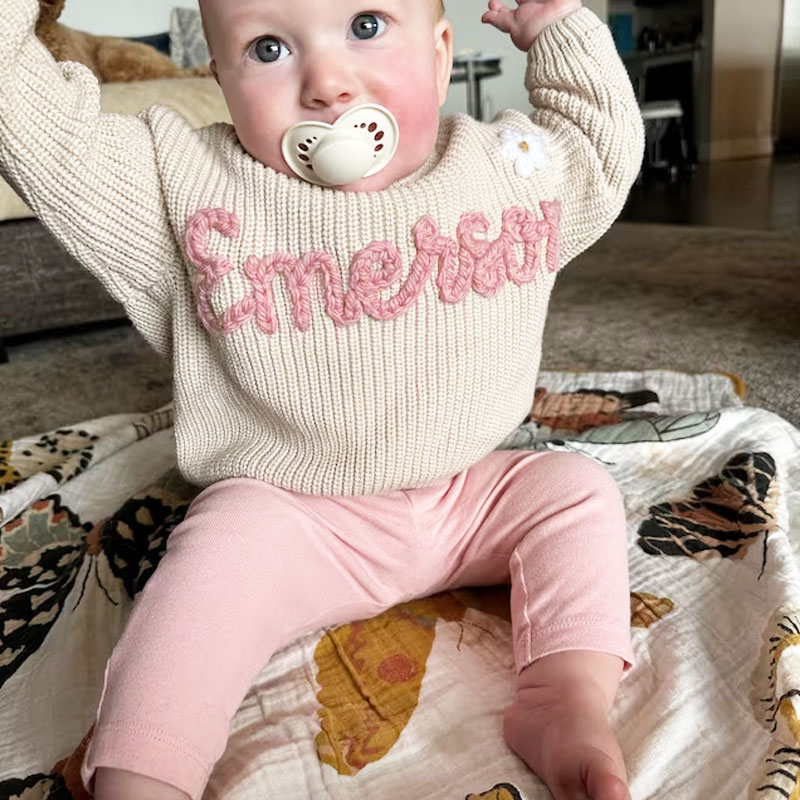 Embroidered Baby Sweater Name Sweater