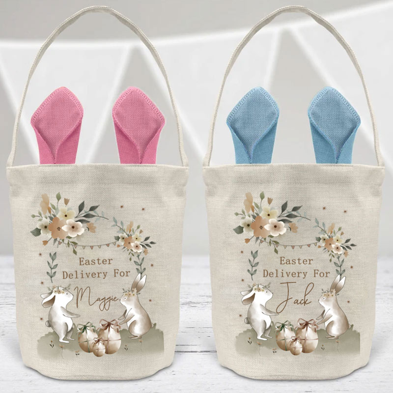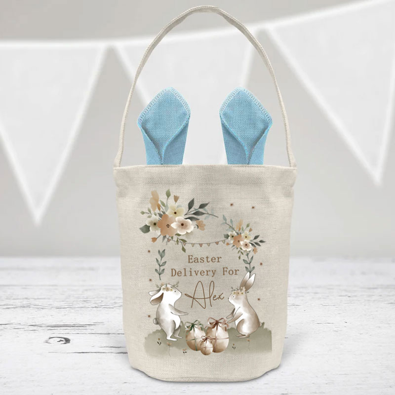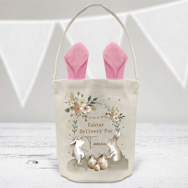 These personalized high-quality Linen Fabric with a burlap look bags are perfect for filling with chocolate, sweets or a toy - perfect for Easter treats!