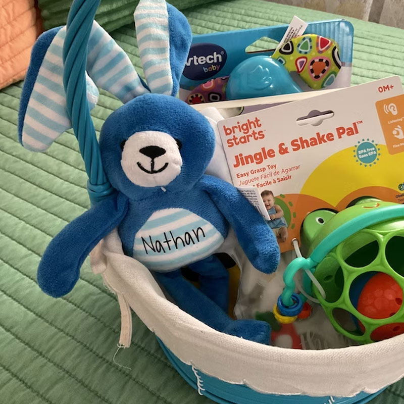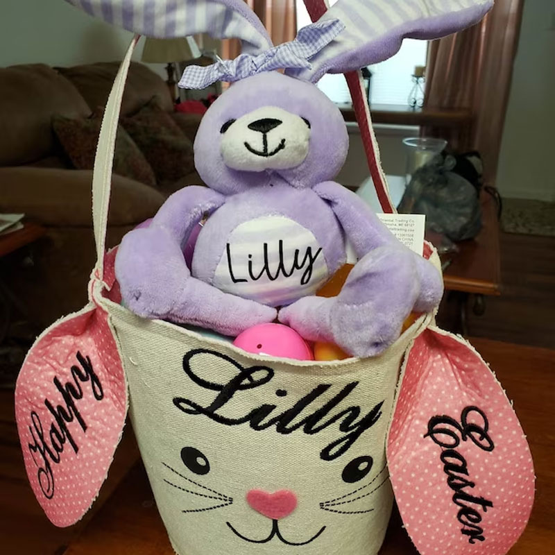 Tuck one of these egg-stra cute personalized bunnies in every Easter basket to make Easter even more fun this year. These bunnies are a generous size and measure 14" from the tip of the ears to the tip of the toe.