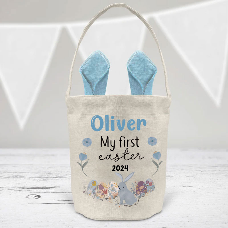 These personalized high-quality Linen Fabric with a burlap look bags are perfect for filling with chocolate, sweets or a toy - perfect for Easter treats!