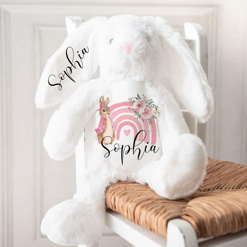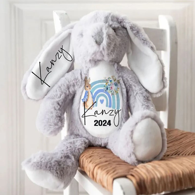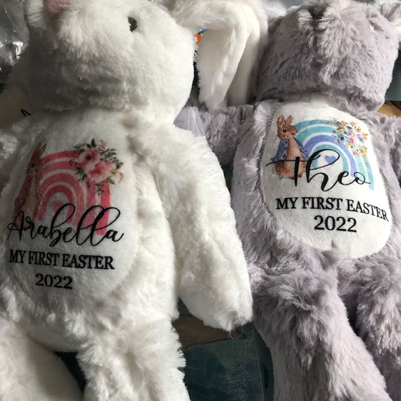 These easter bunny toy super soft plush bunny rabbits make the perfect Teddy Bear Gifts for newborns celebrating their first Easter.    Bunnies will be personalised easter teddy with your chosen design, name and colour for a truly cute bunny gift.