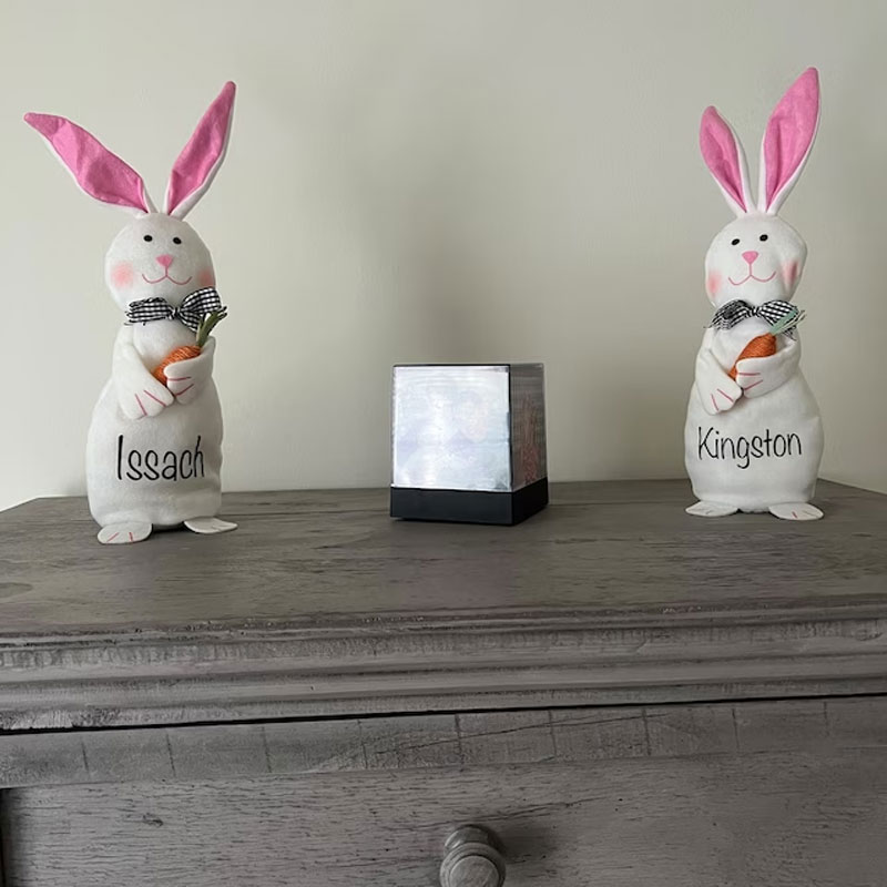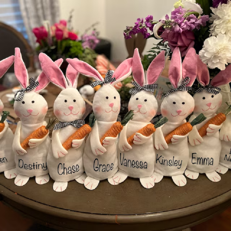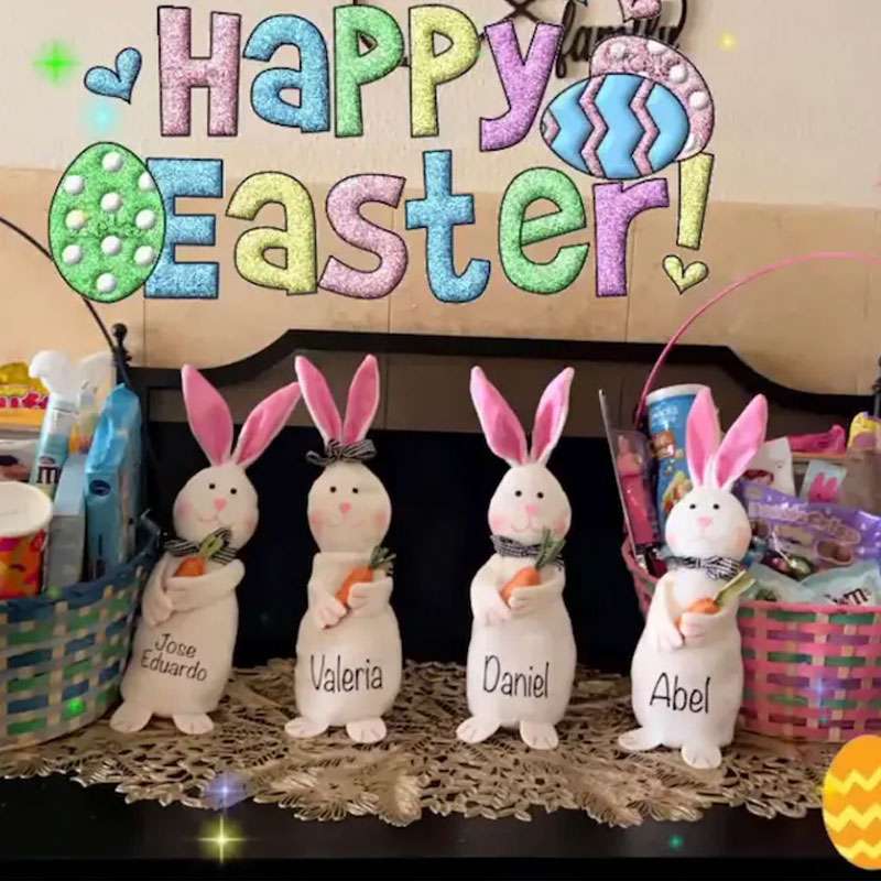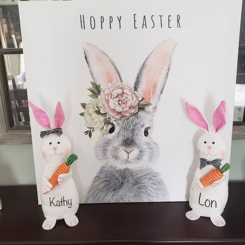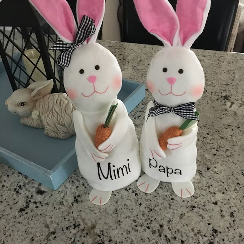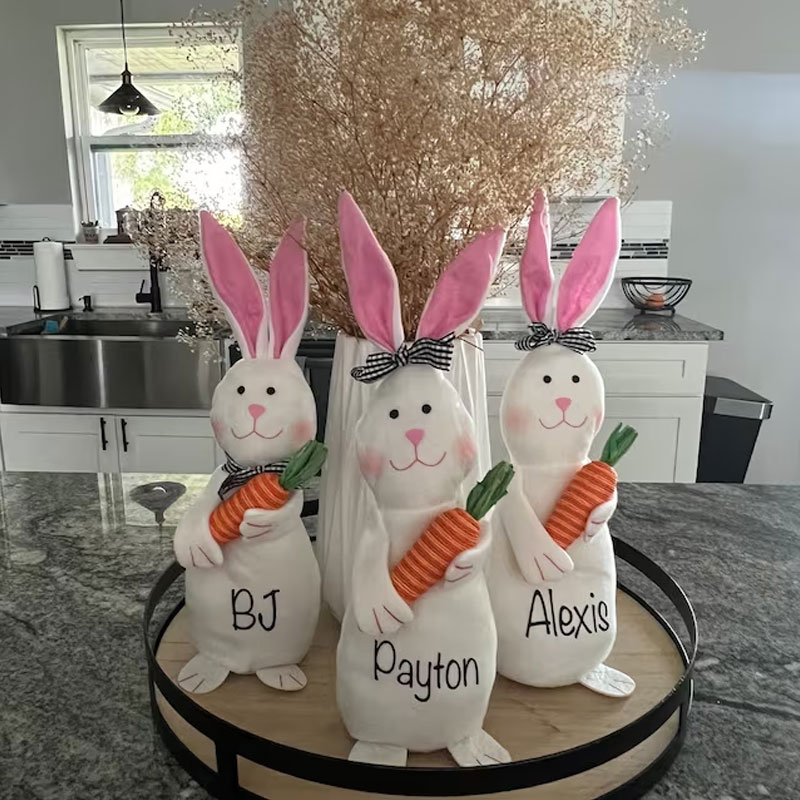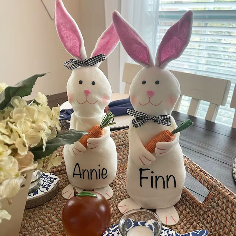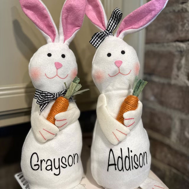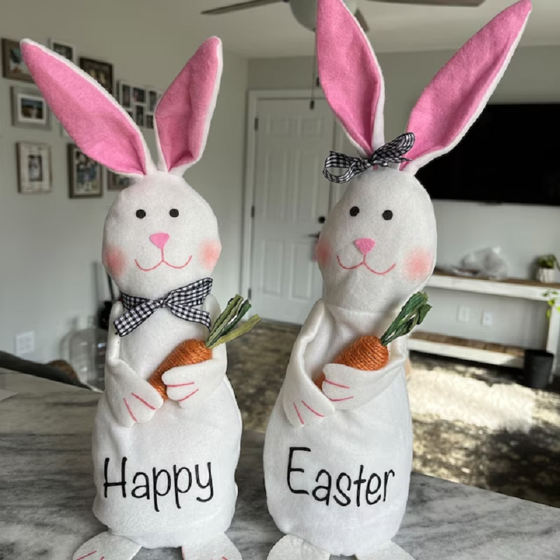 We abosolutely LOVE these plush easter bunnies! These are the cutest decorative bunnies! These are perfect for Easter decorations, Easter keepsakes, Easter basket stuufers for the kids.... everyone will LOVE them!!