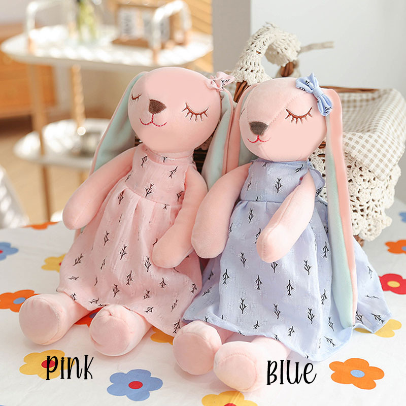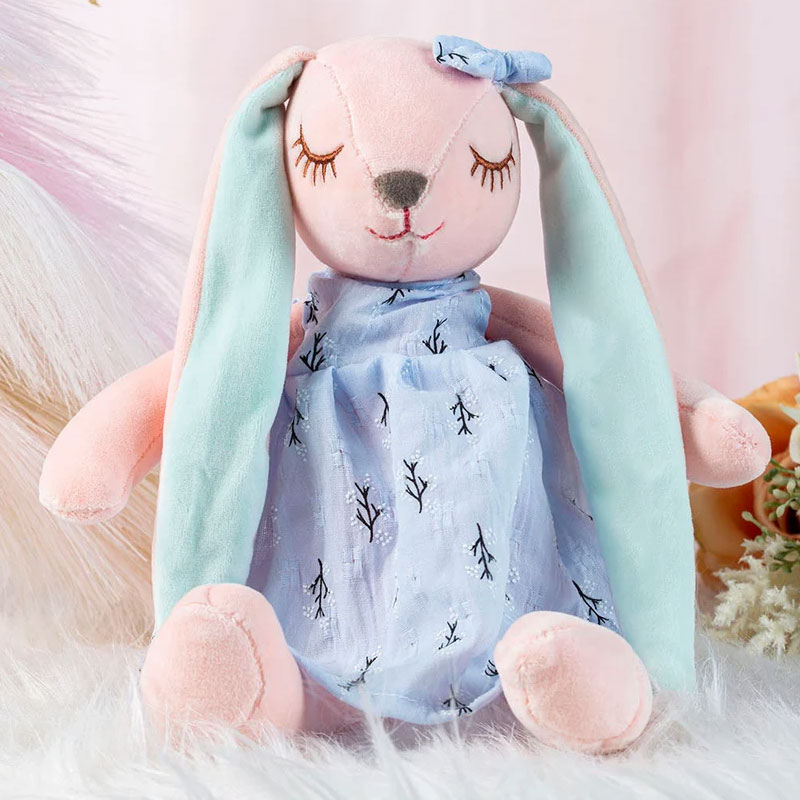 Our bunnies are made of cotton filling, crystal fabric, and super soft cotton plush.