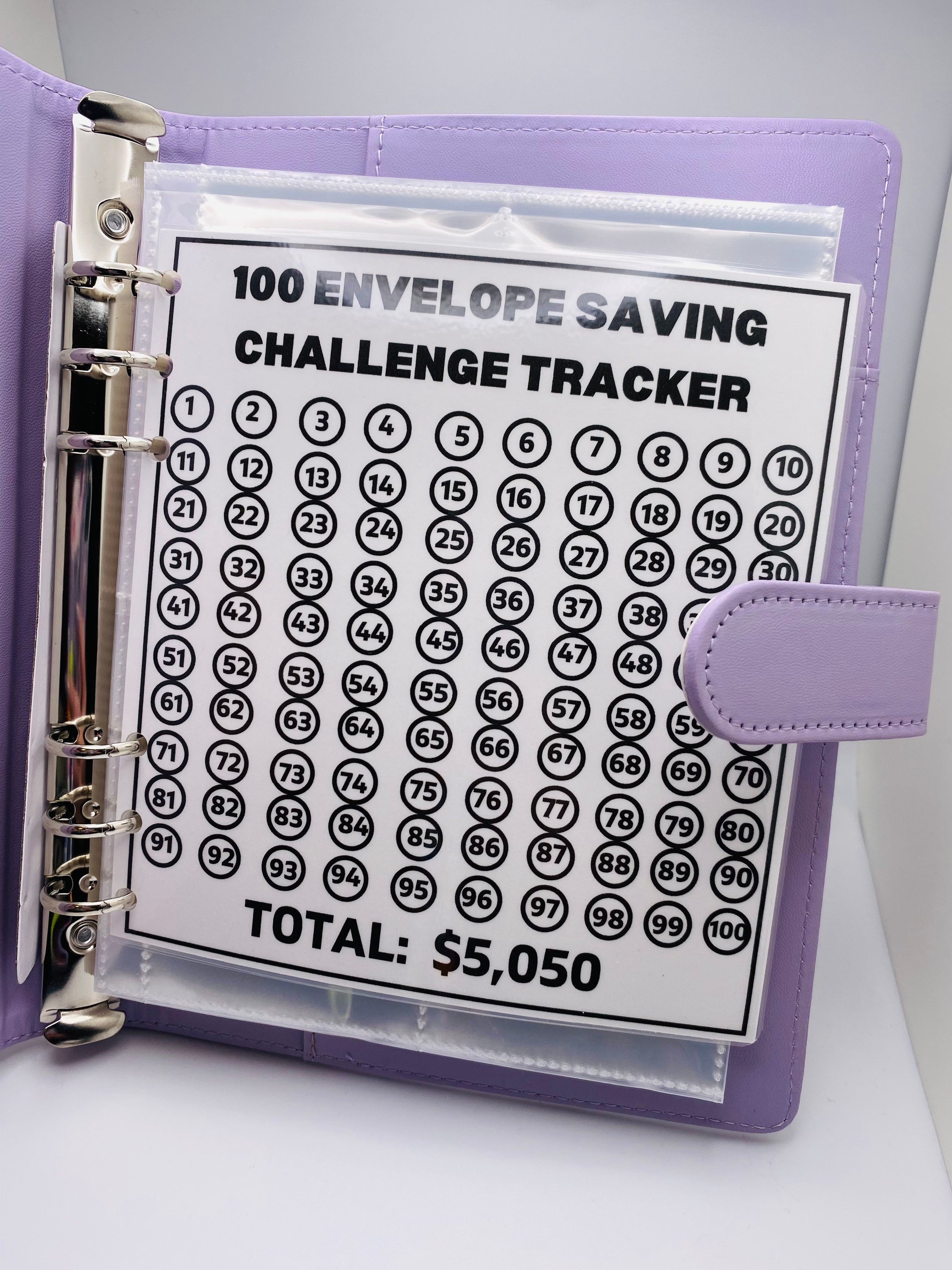 📏Comes with an A5 size binder (9 inches tall X 7 inches wide), 1 laminated reusable tracker, pouches either labeled 1-100 for the traditional way to save $5,050
