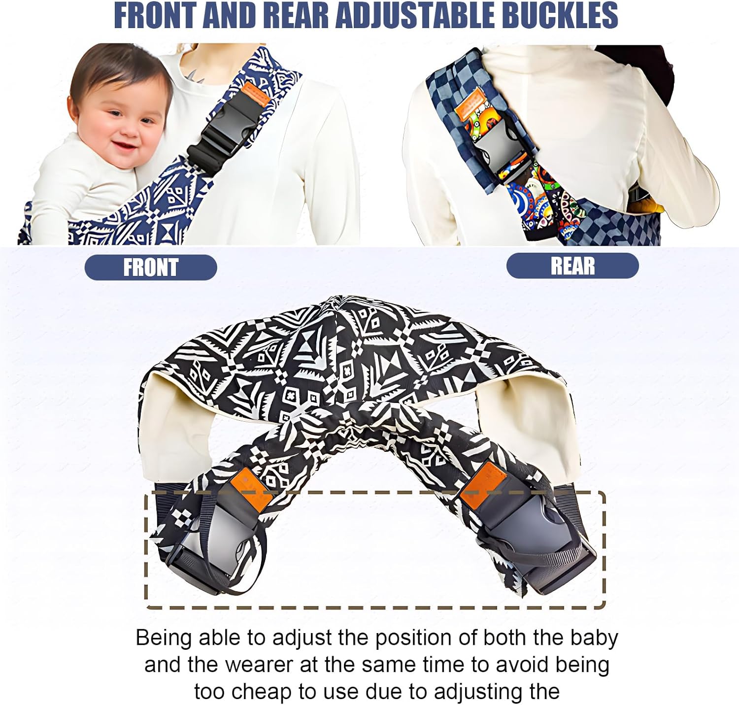 - VERSATILE USAGE,MULTIPLE USAGE MODES- The adjustable straps of our baby sling carrier cater to your comfort level, and rearaccommodating babies aged 0-60 months.There are two adjustment buckles at the front and rear,Whether you have a newborn or a toddler, our sling adapts to your baby's changing needs.It also has a variety of usage modes, including horizontal holding, diagonal holding, straddling, etc., which can adjust the baby's various postures.