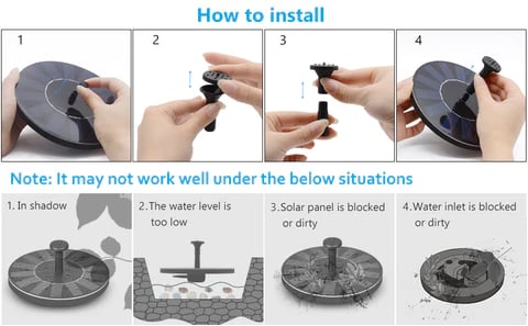 - Easy To Use: Just put the solar fountain under the sun, it will start spraying water.The suction cups at the bottom effectively hold the fountain so it doesn't float around in the birdbath. This fountain does not require complicated installation, nor does it require much maintenance.
