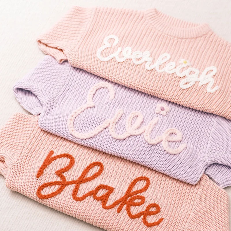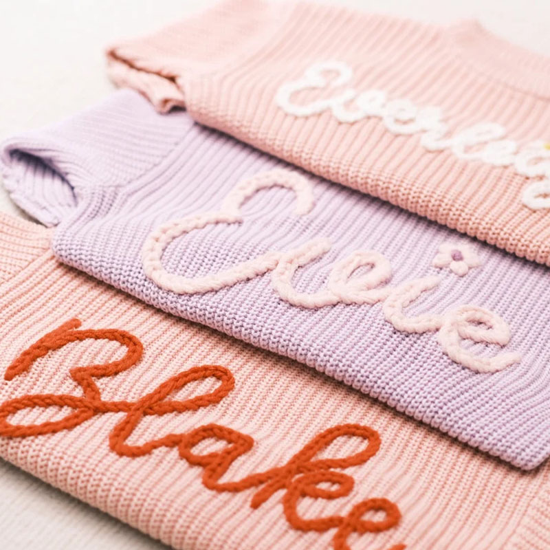 These gorgeous hand embroidered name sweaters are perfect for your little ones! Sizes 0-3m to 5T.