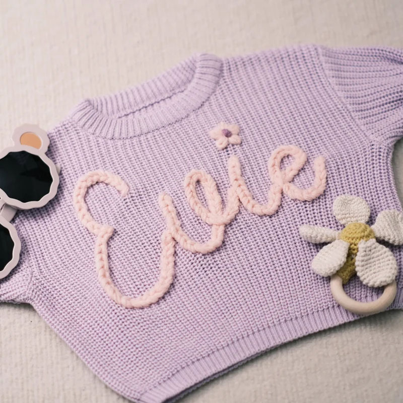 Custom Baby Name And Flowers Hand Embroidered Sweater