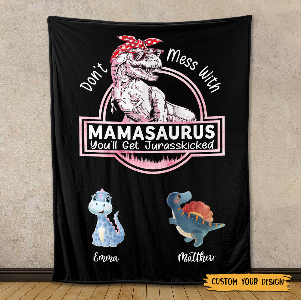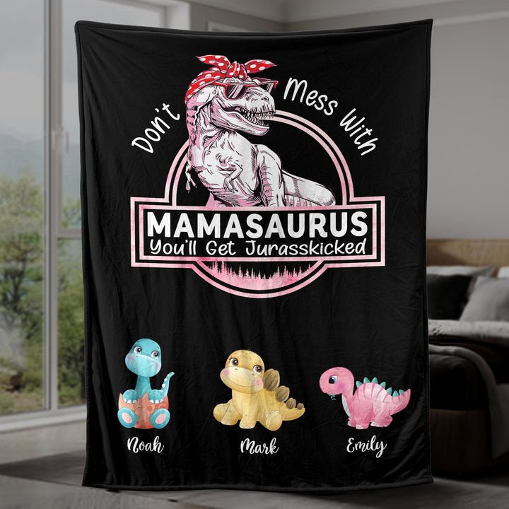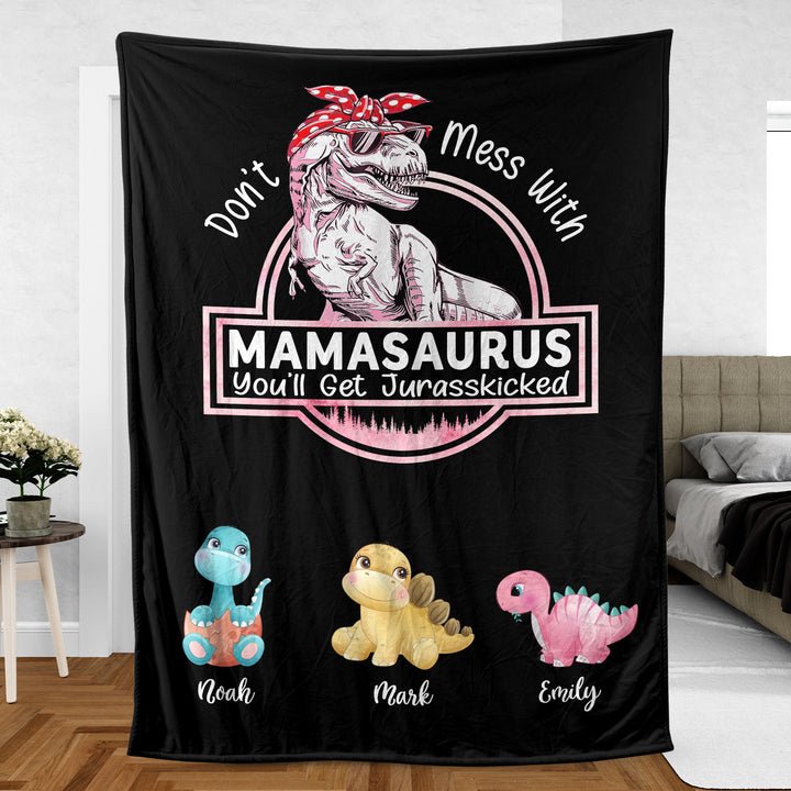 Personalized Blanket For Mom - Don't Mess With Mamasaurus