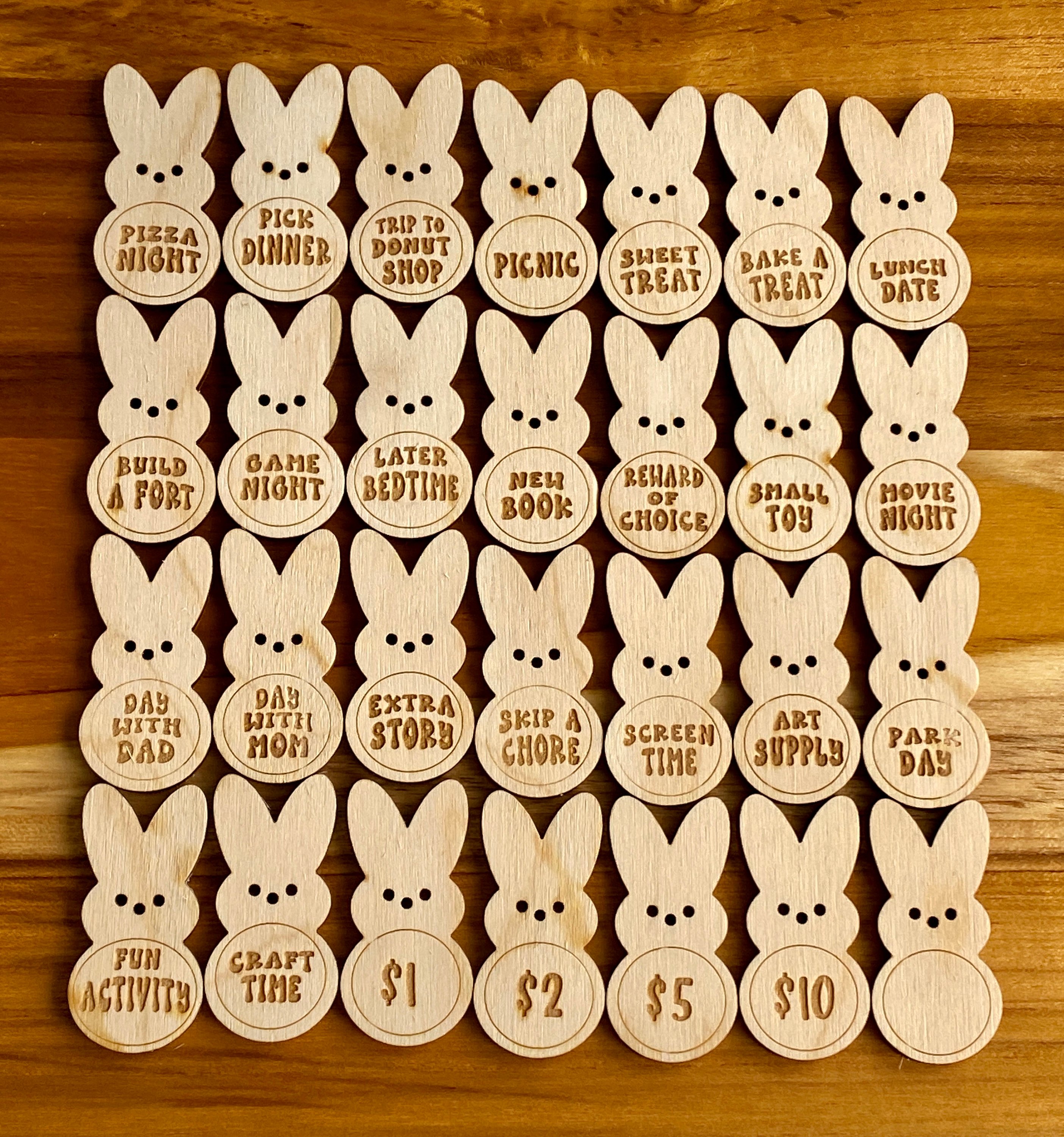 🎈Featuring a cute bunny , these tokens make a great gift on their own or fit into any Easter basket and let the excitement flow. The best part is that they can be used for years to come!