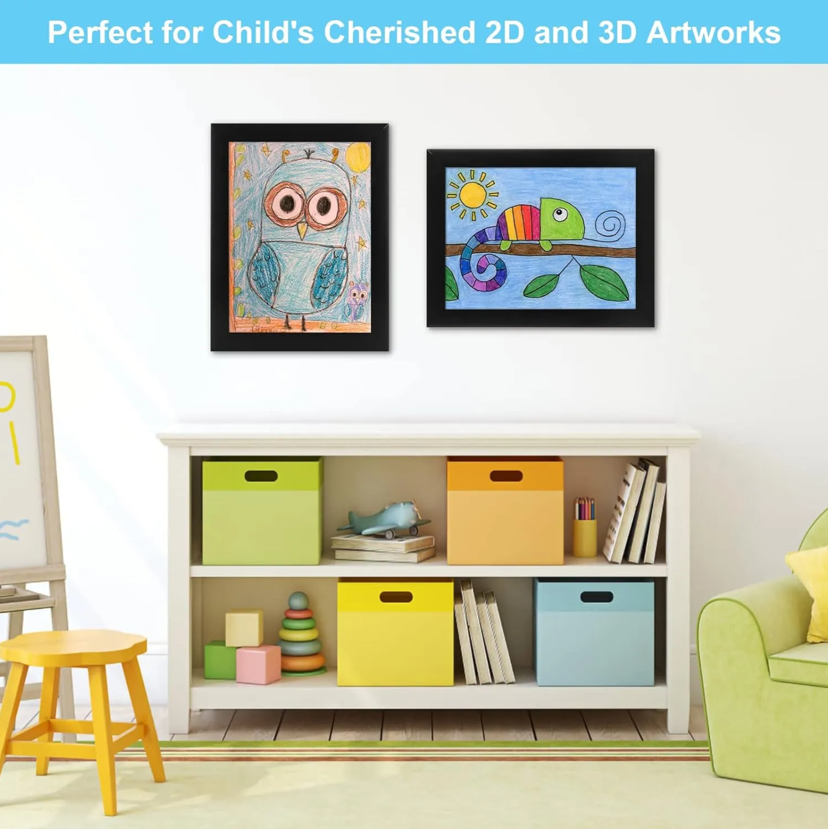 - 【High Capacity】Perfectly suited for 8.5x11 inch or smaller artwork, our frame has a depth of 0.6 inches, making it capable of holding 50-150 pieces of children's artwork depending on paper thickness. Store and showcase your child's artwork all in one place.