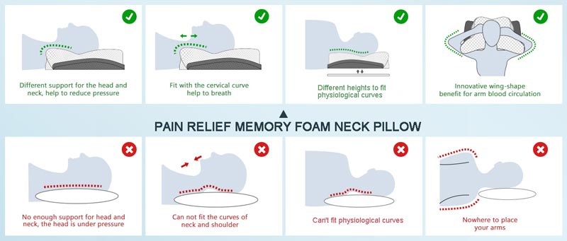 Our Memory Foam Neck Pillow is a great pillow for pain relief sleeping with an ergonomic shape that offers excellent support for your head and neck, and fits side, back, and stomach sleepers!