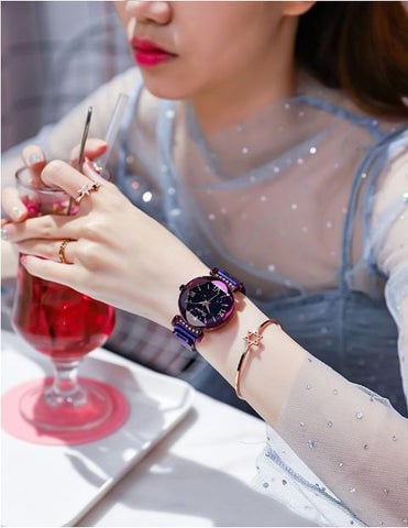 A classic look, this fashion quartz wrist watch is specially designed with a magnetic band. The fashionable particular starry sky design makes it stunning.