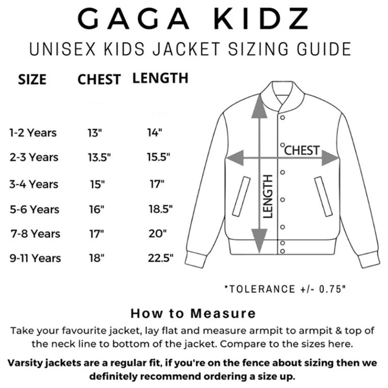 Note: Our varsity jackets typically fit true to size, but for that extra cozy factor, we suggest going a size up. 🤗